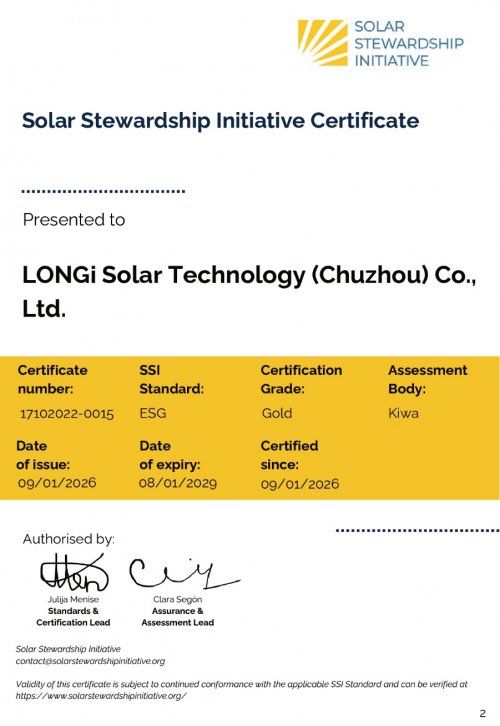 隆基綠能副總裁佘海峰表示:“獲得SSI-ESG金牌認(rèn)證,是對(duì)我們可持續(xù)發(fā)展實(shí)踐的國(guó)際認(rèn)可,也彰顯了我們對(duì)歐洲客戶核心價(jià)值的承諾——即提供可信賴的綠色產(chǎn)品。我們將持續(xù)以技術(shù)創(chuàng)新驅(qū)動(dòng),為歐洲客戶提供高效、低碳足跡的光伏解決方案,助力降低能源轉(zhuǎn)型成本、提升能源自主性,并攜手加速碳中和進(jìn)程,共同邁向可持續(xù)未來(lái)?!?/p>