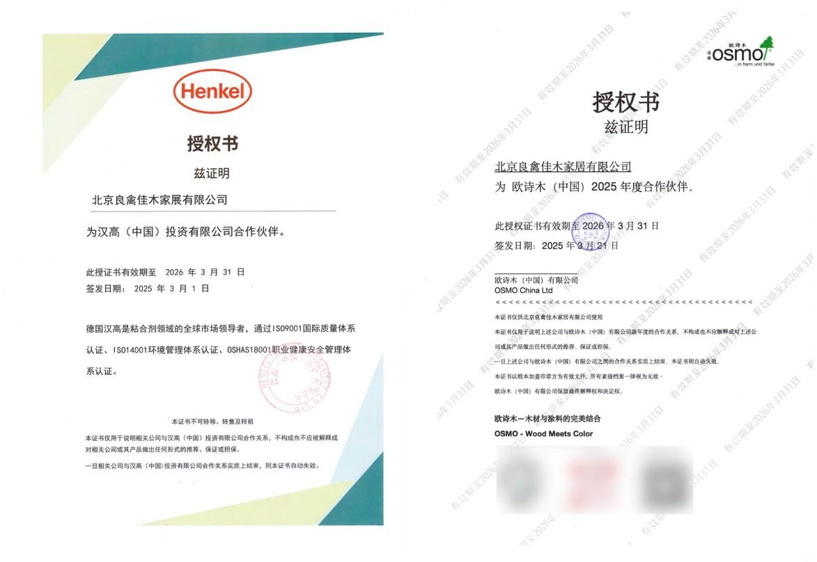3、恪守高環(huán)保標(biāo)準(zhǔn):在材料端,堅(jiān)持使用北美進(jìn)口標(biāo)準(zhǔn)烘烤純原木,采用大板直拼工藝,使用德國漢高品牌拼板膠,配合德國歐詩木木蠟油涂裝,從根本上控制甲醛等污染物的釋放,回應(yīng)消費(fèi)者對綠色健康家居的期待。與此同時(shí),良禽佳木更是德國漢高、德國歐詩木兩大品牌的官方合作伙伴。