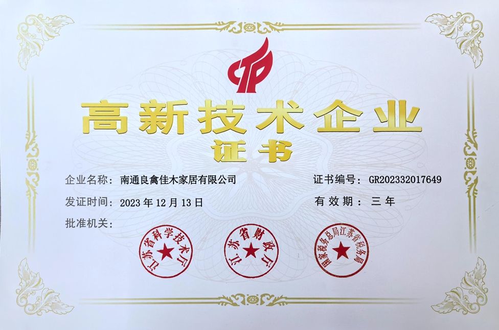在扎實(shí)的制造基礎(chǔ)之上,良禽佳木的技術(shù)創(chuàng)新實(shí)力亦獲得權(quán)威認(rèn)可——南通生產(chǎn)基地已正式被認(rèn)定為國家級“高新技術(shù)企業(yè)”。該資質(zhì)認(rèn)證評審嚴(yán)格,是對企業(yè)在核心自主知識產(chǎn)權(quán)、科技成果轉(zhuǎn)化能力及成長性的綜合肯定。2023年12月成立的企業(yè)技術(shù)中心,持續(xù)致力于原木定制領(lǐng)域的標(biāo)準(zhǔn)化研發(fā)、參數(shù)化建模與數(shù)字化生產(chǎn)技術(shù)的探索,為前端設(shè)計(jì)與后端制造提供了強(qiáng)大的技術(shù)支撐。