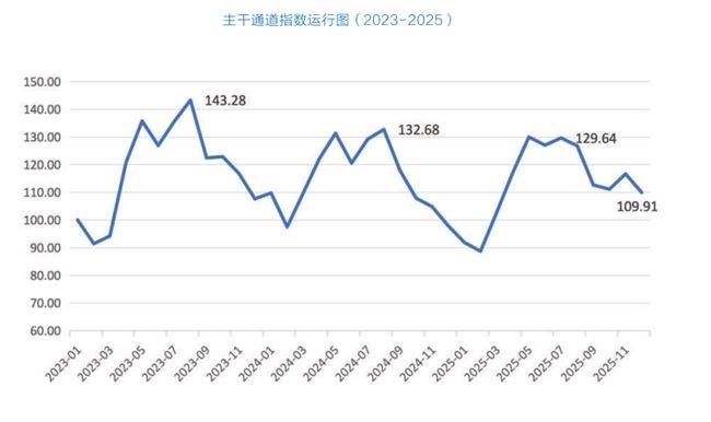 當(dāng)前,全球海運(yùn)物流網(wǎng)絡(luò)正經(jīng)歷百年未有之大變局。地緣政治沖突、供應(yīng)鏈深度重構(gòu)與氣候危機(jī)三重沖擊下,傳統(tǒng)依賴單一航線具有極高風(fēng)險(xiǎn)?!叭蚝_\(yùn)物流通道發(fā)展指數(shù)”顯示,2025年全球主干通道指數(shù)報(bào)109.91點(diǎn),同比上漲12.3%,展現(xiàn)出強(qiáng)大韌性,但地緣風(fēng)險(xiǎn)已成最大變量。目前,在全球航運(yùn)“東升西降”的格局下,主干通道和關(guān)鍵水道呈現(xiàn)韌性分化,亞洲水道或?qū)⒊蔀槿蚝_\(yùn)新重心。