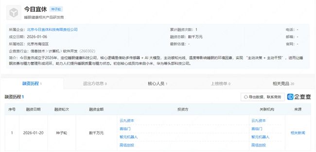 1月20日,小米前高管王騰創(chuàng)辦的“今日宜休”完成數(shù)千萬元種子輪融資,高瓴創(chuàng)投、云九資本、智元機器人與喜臨門聯(lián)合入局,勾勒出睡眠科技賽道的新圖景。多方身份迥異卻目標同頻,背后是萬億睡眠經(jīng)濟的爆發(fā)潛力,更預(yù)示著睡眠科技正從單一產(chǎn)品競爭,邁入資本、技術(shù)、產(chǎn)業(yè)協(xié)同賦能的新階段。