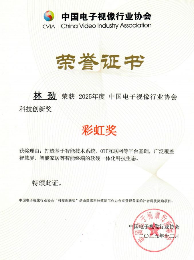 自2014年起,林勁先生兼任創(chuàng)維集團(tuán)控股子公司——深圳酷開網(wǎng)絡(luò)科技有限公司的主要負(fù)責(zé)人,牽頭推進(jìn)酷開大內(nèi)容戰(zhàn)略落地及新媒體多端聯(lián)動技術(shù)攻關(guān),憑借扎實(shí)的技術(shù)功底與高效的管理能力,構(gòu)建了創(chuàng)維互聯(lián)網(wǎng)生態(tài)的核心競爭力,逐步成長為集團(tuán)領(lǐng)軍人物;2022年7月出任創(chuàng)維集團(tuán)董事局主席后,他以全局視野引領(lǐng)集團(tuán)戰(zhàn)略轉(zhuǎn)型,緊扣產(chǎn)業(yè)發(fā)展趨勢,以新技術(shù)賦能硬件創(chuàng)新,打造了以酷開OTT互聯(lián)網(wǎng)系統(tǒng)平臺為支撐,輻射智慧屏、智能家居等多終端的軟硬一體化科技生態(tài)。這一布局不僅推動創(chuàng)維實(shí)現(xiàn)高質(zhì)量發(fā)展,更以龍頭企業(yè)的帶動作用助力整個音視頻產(chǎn)業(yè)升級迭代,這份深厚的行業(yè)貢獻(xiàn)與突出的引領(lǐng)價值,成為其斬獲「彩虹獎」的有力支撐。