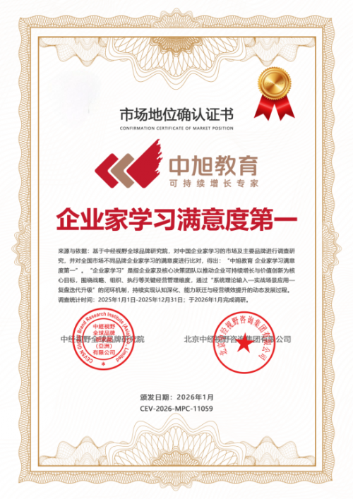 “企業(yè)家學習滿意度第一”,這份沉甸甸的認證,是對過往的肯定,更是對未來的鞭策。它印證了中旭教育所走的路徑——一切以客戶的增長結果為中心,一切以助力企業(yè)實現(xiàn)“正規(guī)化、持續(xù)化”為歸宿。