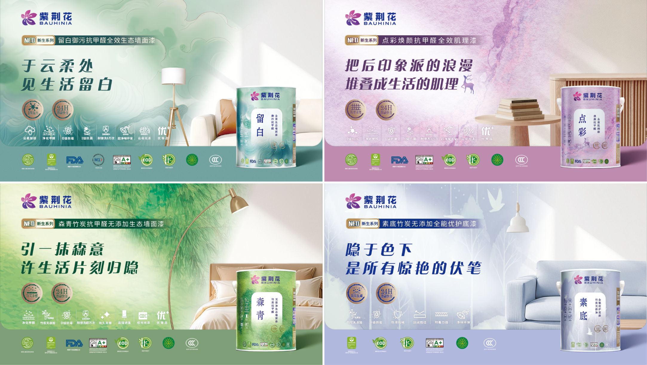- 零售渠道:推出紫荊花NEO新生系列乳膠漆新品,包含“留白、點彩、森青、素底”四款兼具東西方美學與性能的產(chǎn)品。NEO新生系列寓意新生,堅守唯一初心,彰顯紫荊花立足行業(yè)標桿的魄力。新產(chǎn)品定位和包裝設計已輕盈跨越東西方美學疆界,兼具東方的寫意與雅致,與西方的現(xiàn)代與格調巧妙相融,精準呼應了年輕人群對理想生活的本能向往。