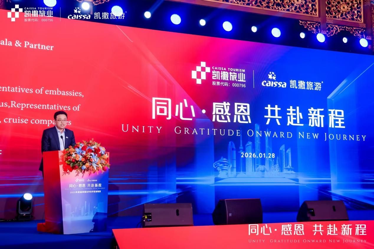凱撒旅業(yè)黨委副書記、總經(jīng)理馬茁飛,在活動中表達(dá)了:2026年,凱撒期待與大家繼續(xù)攜手,在資源、產(chǎn)品、服務(wù)、創(chuàng)新等維度深度協(xié)同,共同開拓文旅新未來的愿景。