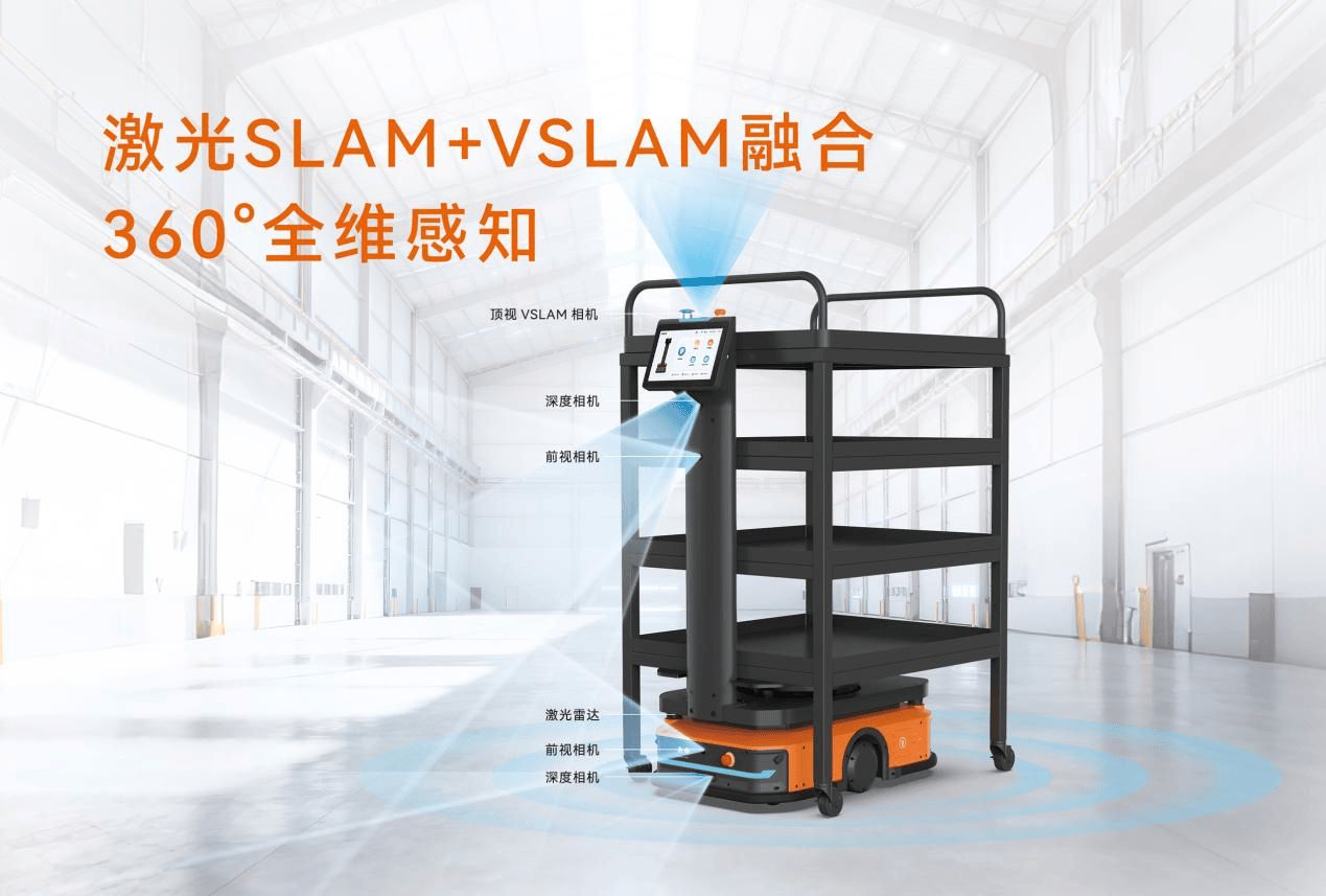 在部署層面,傳統(tǒng)AGV/AMR項(xiàng)目的難點(diǎn)往往不是硬件本身,而是導(dǎo)航精度與環(huán)境適應(yīng)能力不足引發(fā)的系統(tǒng)復(fù)雜化。為此,iBen X系列采用激光SLAM與視覺(jué)VSLAM雙融合方案:激光SLAM提供穩(wěn)定、精確的定位與遠(yuǎn)距離感知能力,視覺(jué)VSLAM補(bǔ)足環(huán)境細(xì)節(jié)識(shí)別。兩者互補(bǔ),使機(jī)器人在復(fù)雜、動(dòng)態(tài)的工業(yè)場(chǎng)景也能保持穩(wěn)定運(yùn)行。