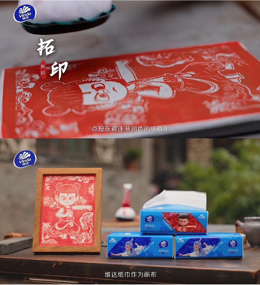 2025年5月,維達再度創(chuàng)新,攜手動畫IP“哪吒”,將另一項古老技藝——非遺拓印推至臺前。通過將拓印技藝與中國傳統(tǒng)神話結(jié)合,維達不僅讓沉寂的古老技藝煥發(fā)出新時代的活力,更借助親子互動拓印體驗,讓“韌性”的品牌理念與“堅韌不拔”的文化精神在家庭場景中悄然傳遞。