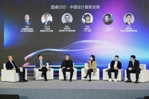 第一場(chǎng)圓桌的主題是“中國(guó)設(shè)計(jì)服務(wù)全球”,由上海國(guó)際汽車(chē)城天工設(shè)計(jì)學(xué)院院長(zhǎng)張銘主持,紅旗造型設(shè)計(jì)中心部長(zhǎng)劉玉書(shū)、長(zhǎng)安汽車(chē)全球設(shè)計(jì)中心副總經(jīng)理赫英、小鵬汽車(chē)CMF總監(jiān)張琳、iCAR造型設(shè)計(jì)負(fù)責(zé)人張自然、嵐圖汽車(chē)數(shù)字化與智能網(wǎng)聯(lián)總監(jiān)張侃參與討論。