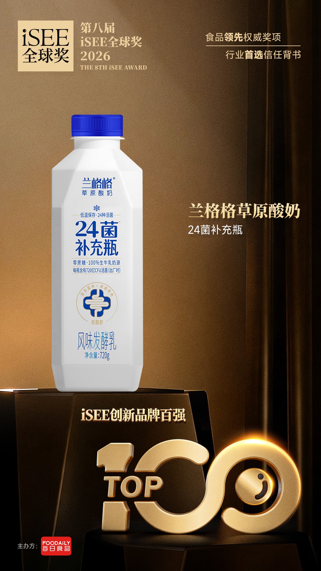 2026年2月5日,被譽(yù)為“食品界諾貝爾”的第八屆iSEE全球獎?wù)浇視浴緄SEE 創(chuàng)新品牌百強(qiáng)】名單,國內(nèi)草原酸奶領(lǐng)軍品牌蘭格格憑借旗下明星新品——24菌補(bǔ)充瓶,從全球 5688個申報案例中突圍,成功入選乳品類創(chuàng)新百強(qiáng),其“以用戶健康需求為核心”的創(chuàng)新實踐,不僅斬獲行業(yè)權(quán)威認(rèn)可,更成為食品健康化功能化趨勢下的標(biāo)桿范例。