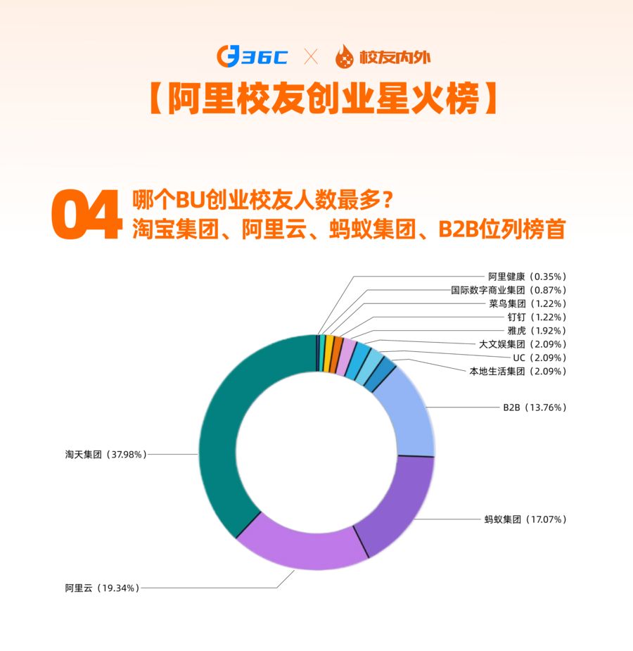 淘天集團(tuán)、B2B、阿里云的創(chuàng)業(yè)校友占比居高。通過交叉分析可知,大多數(shù)校友選擇的創(chuàng)業(yè)賽道,正是此前工作多年的領(lǐng)域。