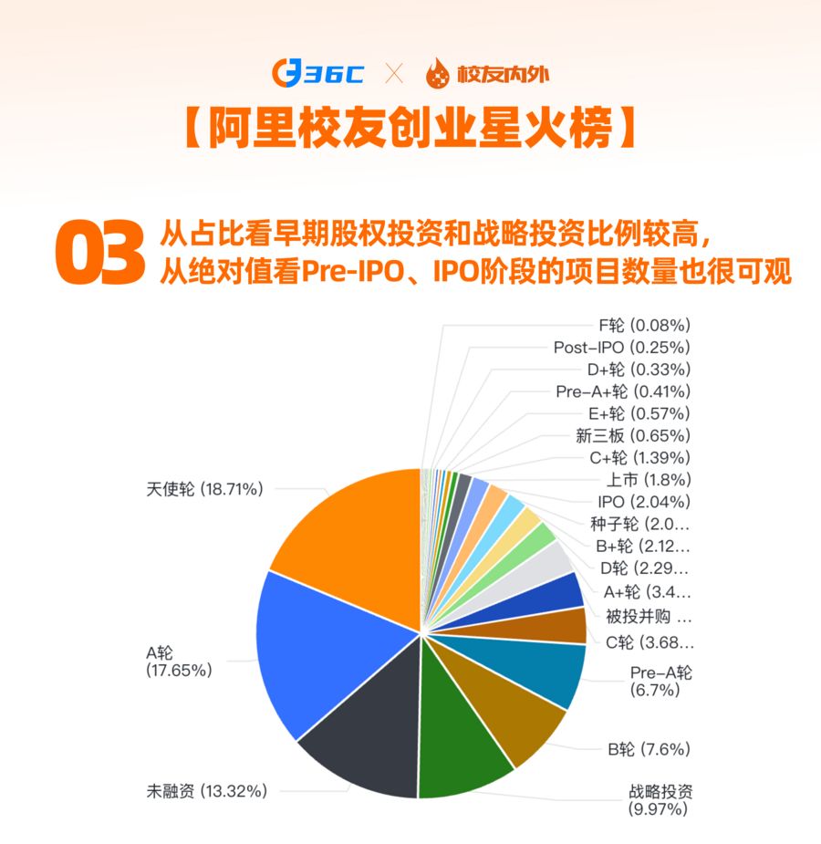 在資本認(rèn)可上,阿里系創(chuàng)業(yè)項(xiàng)目表現(xiàn)亮眼。眾多項(xiàng)目已獲得早期融資或者戰(zhàn)略投資,Pre-IPO、IPO階段的項(xiàng)目數(shù)量也很可觀。從參投機(jī)構(gòu)看,紅杉中國(guó)、IDG、阿里巴巴等出手最為頻繁。