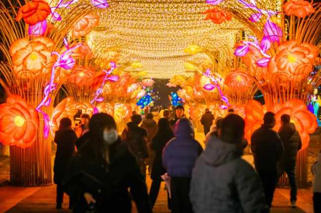本屆燈會(huì)深度融合傳統(tǒng)民俗底蘊(yùn)、前沿科技力量與時(shí)尚潮流元素,精準(zhǔn)契合馬年新春主題,全面強(qiáng)化AI科技賦能,設(shè)置“潮趣新春、唐山熱戀、動(dòng)物總動(dòng)員、山??裣?、魅力唐山”五大主題賞燈區(qū)、40組特色燈組。其中,潮趣新春賞燈區(qū)主打年味主題,燈組上的奔馬造型呼應(yīng)馬年新春,寓意騏驥奔騰、前程似錦;以夢(mèng)為馬燈組勾勒出駿馬踏浪、星河為伴的唯美畫(huà)面;“馬上暴富”等燈組則充分融入傳統(tǒng)年俗元素,將新春氛圍感拉滿(mǎn)。唐山熱戀主題賞燈區(qū)則充分融入國(guó)風(fēng)浪漫元素,成為情侶約會(huì)、新人打卡的首選之地。動(dòng)物總動(dòng)員主題賞燈區(qū)匯聚奇幻森林、童話(huà)樹(shù)屋、冰靈仙子等眾多萌趣燈組,更與麥斯卡瘋狂動(dòng)物城快閃店、凱叔講故事等IP實(shí)現(xiàn)夢(mèng)幻聯(lián)動(dòng)。山??裣胫黝}賞燈區(qū)以《山海經(jīng)》為靈感,打造賽博時(shí)空、機(jī)甲靈龜、鏡面時(shí)空、獨(dú)角獸等一系列科技感十足的燈組。洋溢著濃濃年味兒的魅力唐山主題賞燈區(qū)緊扣新春民俗主題,“有鼓氣”、姓氏尋根、萬(wàn)家燈火等大型燈組密集呈現(xiàn),形態(tài)各異的游魚(yú)造型、錯(cuò)落排布的大紅燈籠、百花齊放的夢(mèng)幻長(zhǎng)廊,讓每一位來(lái)到這里的游客都能沉浸在團(tuán)圓喜慶的氛圍之中。