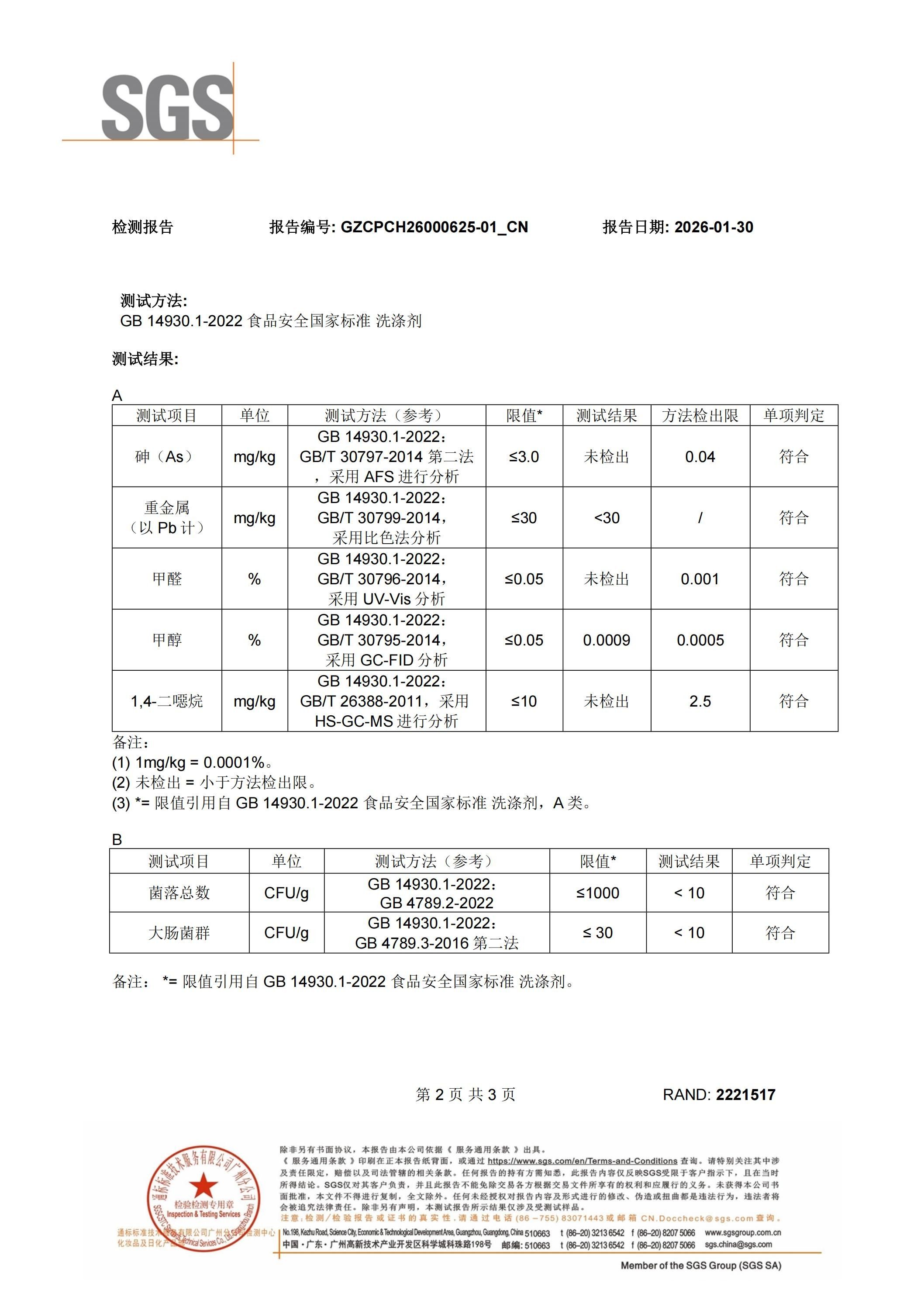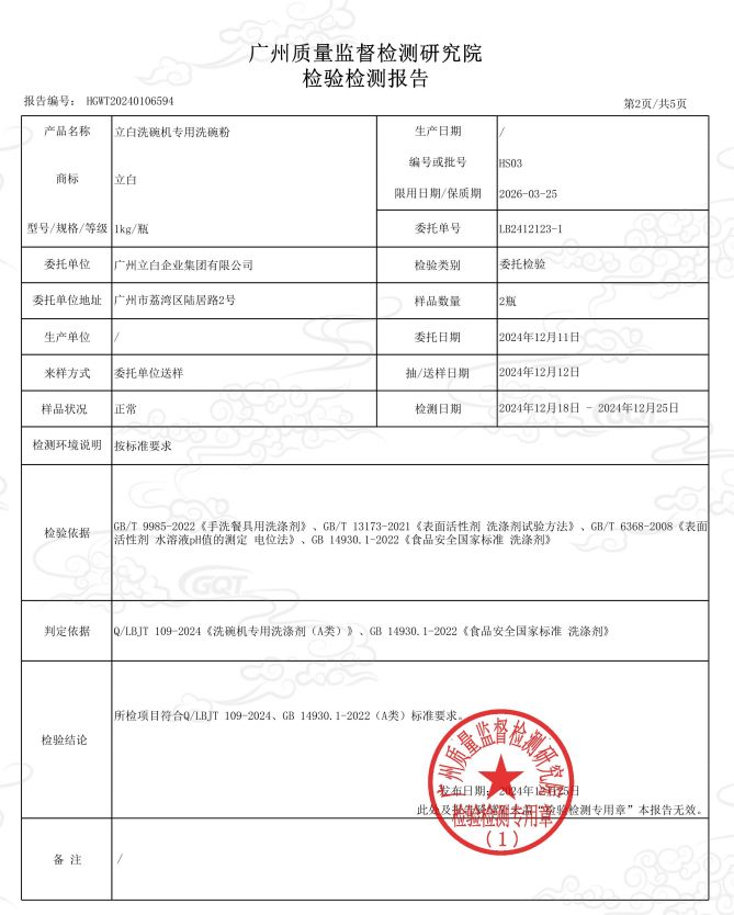 當(dāng)安全標(biāo)準(zhǔn)提升至可接觸食品的A類等級(jí),意味著所有注重健康品質(zhì)的家庭人群對(duì)產(chǎn)品品質(zhì)的可靠性產(chǎn)生更高的期待。為進(jìn)一步驗(yàn)證立白智凈洗碗機(jī)專用天然洗碗粉的 A 類安全屬性與全食品用成分優(yōu)勢(shì),品牌特別委托國(guó)際權(quán)威檢測(cè)機(jī)構(gòu) SGS 開(kāi)展專項(xiàng)檢測(cè),重點(diǎn)針對(duì)食品安全國(guó)家 A 類標(biāo)準(zhǔn)核心管控物質(zhì)進(jìn)行全面篩查。檢測(cè)項(xiàng)目嚴(yán)格覆蓋砷、鉛等重金屬,甲醇、甲醛、1,4 - 二噁烷等有害化學(xué)殘留,以及菌落總數(shù)、大腸菌群等微生物指標(biāo),所有檢測(cè)均依據(jù)《食品安全國(guó)家標(biāo)準(zhǔn)洗滌劑》等權(quán)威標(biāo)準(zhǔn)執(zhí)行,檢測(cè)結(jié)果均符合 A 類食品標(biāo)準(zhǔn)嚴(yán)苛要求。這份 SGS 檢測(cè)報(bào)告從原料安全性、成分純凈度、使用無(wú)殘留等多維度,實(shí)證立白智凈天然洗碗粉 “全食品用成分、0 添加有害化學(xué)物質(zhì)、無(wú)殘留” 的核心優(yōu)勢(shì),讓產(chǎn)品通過(guò) A 類標(biāo)準(zhǔn)認(rèn)證的結(jié)論更具說(shuō)服力,為家庭餐具清潔安全再添一道堅(jiān)實(shí)保障。