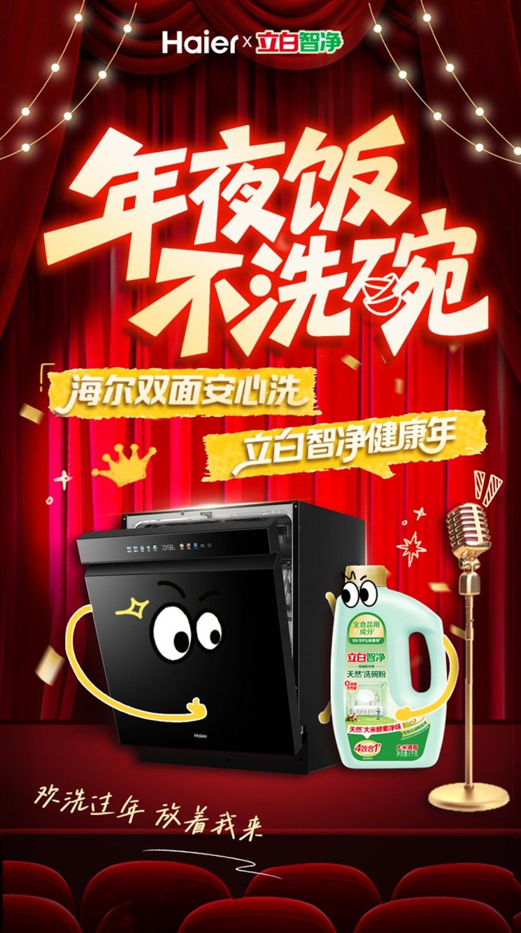與此同時(shí),家喻戶曉的家電品牌海爾作為立白的超級(jí)伙伴,現(xiàn)場(chǎng)展示科技力量。此次亮相的海爾W5000Plus+雙面洗洗碗機(jī),通過(guò)演員精彩演繹揭曉其專利雙面洗潔凈科技如何終結(jié)鍋底污漬殘留,以及雙80℃蒸汽洗科技如何徹底消殺病菌等難題。立白洗碗清潔產(chǎn)品與專用洗碗機(jī)的協(xié)同創(chuàng)新,組成“年夜飯最佳雙洗CP”,帶來(lái)解決現(xiàn)代都市品質(zhì)家庭餐具清潔焦慮的破局之道。