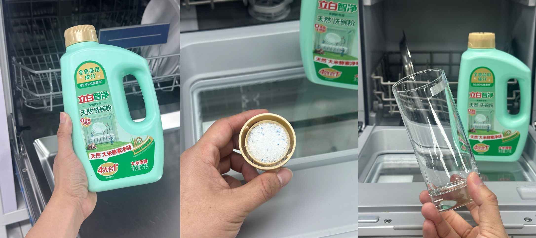 同時(shí),天然洗碗粉針對(duì)中式餐飲特有的重油頑垢,采用強(qiáng)效去污專利技術(shù)配方,特含天然大米酵素、植物淀粉酵素、蛋白酵素精華三重酵素成分,組成靶向去污矩陣,能高效瓦解粘膩的面糊、頑固的肉蛋垢。尤其天然大米酵素精華更能從源頭吸附并清除餐具上的燒烤、海鮮腥味等廚余異味,讓洗碗機(jī)門開(kāi)啟的瞬間,撲面而來(lái)的是淡淡的谷物清香,而非化學(xué)香精的痕跡??梢哉f(shuō),該產(chǎn)品已經(jīng)超越了基礎(chǔ)的“洗凈”功能,實(shí)現(xiàn)了 “潔凈、除味、拋光、養(yǎng)護(hù)”的四效合一。它能加速烘干、清除水漬,讓玻璃器皿光潔如新;同時(shí)軟化水質(zhì),預(yù)防水垢,悉心養(yǎng)護(hù)昂貴的餐具與洗碗機(jī)內(nèi)腔。