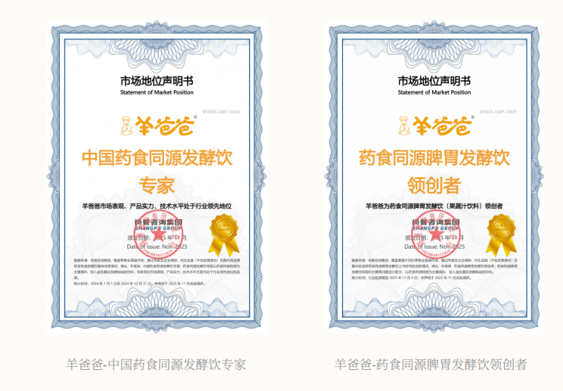 * 羊爸爸產(chǎn)品品類榮獲多個市場地位認(rèn)證。
