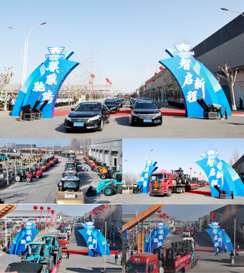 在熱烈的掌聲中,全體市場人員有序登車,運(yùn)載英軒裝載機(jī)、拖拉機(jī)、叉車的車隊(duì)也緩緩駛出廠區(qū),奔赴全國市場,標(biāo)志著新一輪市場開拓全面展開。