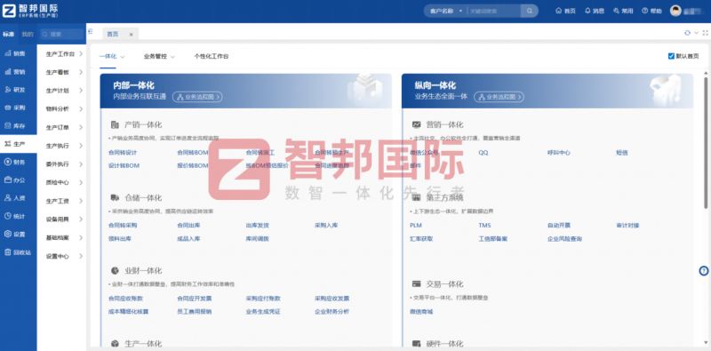 這些痛點(diǎn)相互交織,成為工業(yè)企業(yè)數(shù)智化轉(zhuǎn)型的核心障礙。破解困境的關(guān)鍵,在于摒棄分散式管理思維,構(gòu)建一體化、集成化、智能化的管理體系,而智邦國際一體化ERP正是針對(duì)上述痛點(diǎn)量身打造的數(shù)智化管理解決方案。
