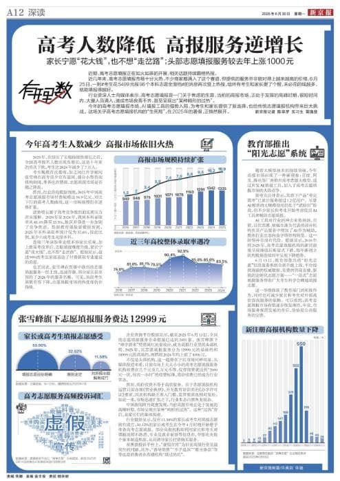 第一重矛盾,是市場需求與供給生態(tài)之間的鴻溝。據(jù)新京報(bào)數(shù)據(jù),2025年高考志愿填報(bào)市場付費(fèi)規(guī)模預(yù)計(jì)達(dá)10.9億元,全國相關(guān)企業(yè)超2200家。需求旺盛,催生的卻是畸形的過熱——準(zhǔn)入門檻低、缺乏統(tǒng)一標(biāo)準(zhǔn),“虛假宣傳”“20分鐘出方案”等行業(yè)亂象頻發(fā)。