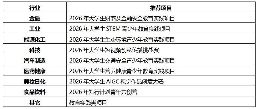 對企業(yè)而言,支持大學(xué)生成長發(fā)展不僅是履行社會責(zé)任的體現(xiàn),更是品牌年輕化、價值深度化的戰(zhàn)略選擇?!柏?zé)任100丨CSR中國教育榜”組委會(簡稱“責(zé)任100”)聯(lián)合知行計劃,發(fā)起2026年“責(zé)任100丨重點(diǎn)行業(yè)企業(yè)ESG青年行動”,面向金融、科技、工業(yè)、能源化工、汽車制造、醫(yī)藥健康、美妝日化、食品飲料等8個重點(diǎn)行業(yè)企業(yè),開展各類項(xiàng)目,助力行業(yè)企業(yè)深度觸達(dá)百萬青年大學(xué)生。