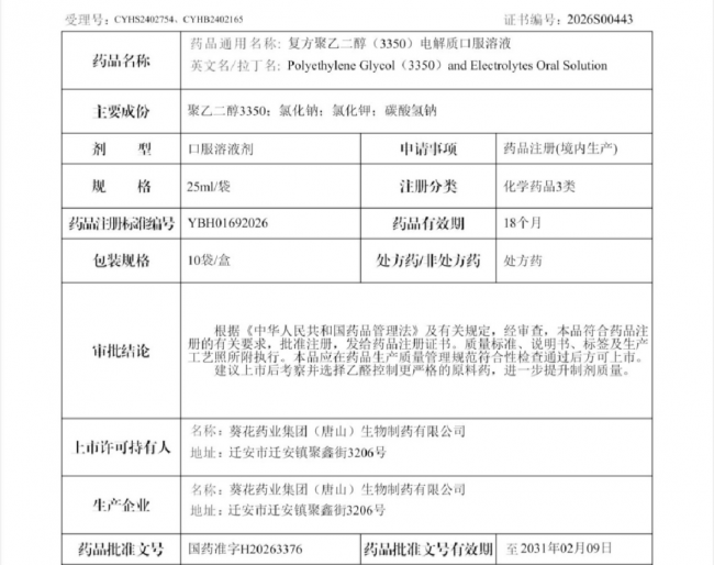 健康中國馬年伊始,復(fù)方聚乙二醇(3350)電解質(zhì)口服溶液的成功獲批,成為葵花藥業(yè)開年的首個(gè)研發(fā)捷報(bào),也印證了企業(yè) “選道地藥材,做精品良藥,做咱老百姓的好藥” 的經(jīng)營理念,更是企業(yè)持續(xù)精耕細(xì)作、以研發(fā)創(chuàng)新賦能健康中國建設(shè)的生動(dòng)實(shí)踐。