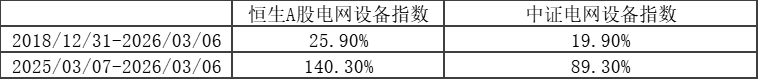 先看電網(wǎng)設(shè)備,選電網(wǎng)相關(guān)指數(shù),核心要看“龍頭集中度”。市場上有兩條相關(guān)指數(shù),恒生A股電網(wǎng)設(shè)備指數(shù)和中證電網(wǎng)設(shè)備指數(shù),數(shù)據(jù)說話更有說服力:自2018年基日至今,恒生A股電網(wǎng)設(shè)備指數(shù)年化收益25.9%,遠(yuǎn)超中證的19.9%;近一年漲幅更是達(dá)到133.6%,高出中證50個(gè)百分點(diǎn)。