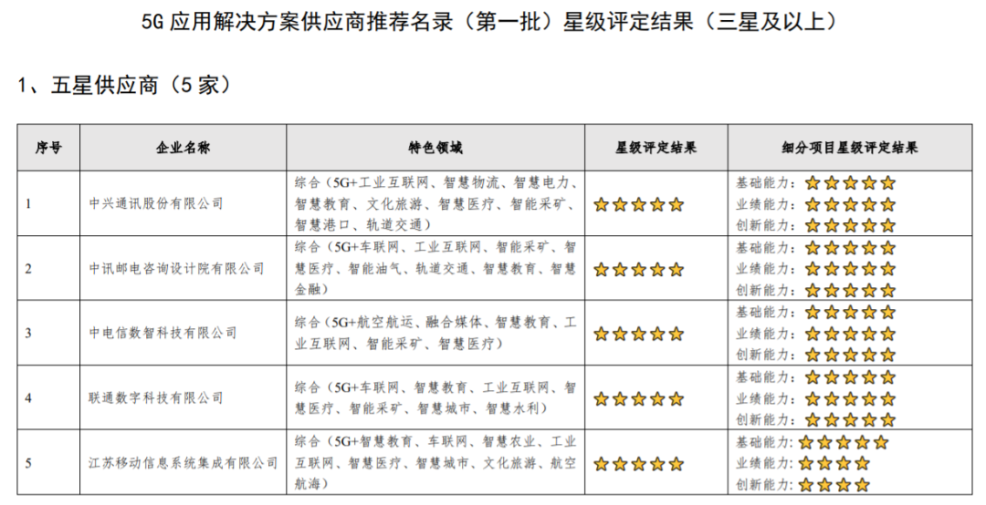 圖片來源:5G應(yīng)用解決方案供應(yīng)商推薦名錄(第一批)星級評定結(jié)果公示