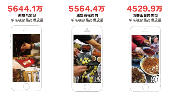 近年來,很多“看完就想吃”的特色美食,成了短視頻拍攝重點(diǎn)。吃飯時(shí)隨手拍一拍,就很容易成為抖音上流行的熱門視頻。其中,西安的毛筆酥、鴨蛋黃肉夾饃和鏡糕,重慶的九宮格火鍋,成都的石棉烤肉等都都引發(fā)了跟風(fēng)拍攝,單條播放量均達(dá)到5千萬級(jí)水平。