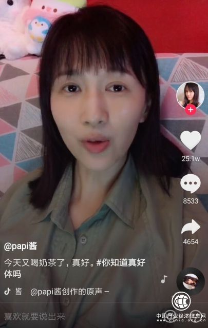 如果你還是不太明白的話,再來看看papi醬發(fā)的一段抖音真好體視頻,“大家好,我是papi醬,今天又喝奶茶了,真好。”