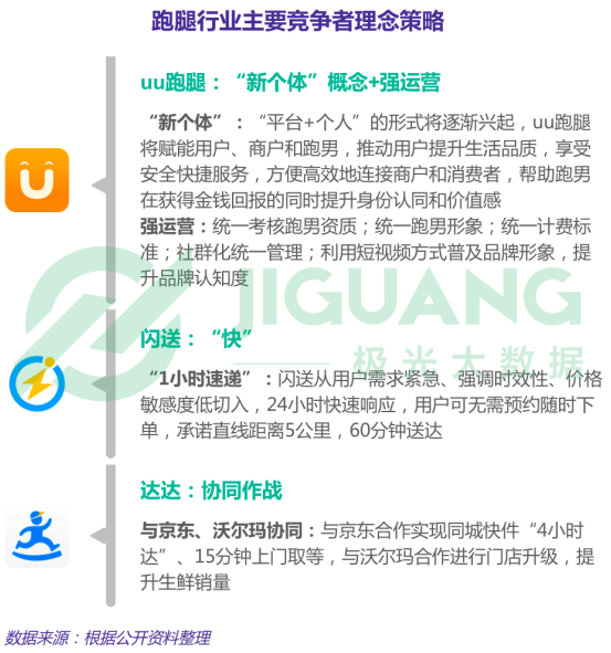 uu跑腿、閃送、達(dá)達(dá)等跑腿行業(yè)競爭者采取不同策略提升品牌競爭力。