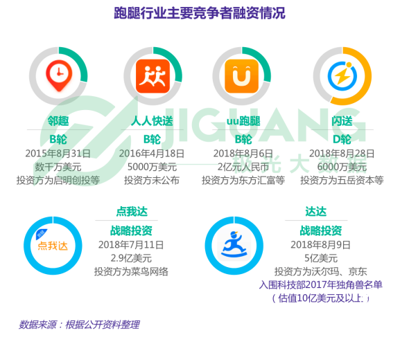 2018年8月,uu跑腿、閃送、點(diǎn)我達(dá)和達(dá)達(dá)相繼完成新一輪融資,充足資金儲(chǔ)備情況下,跑腿行業(yè)競爭將愈發(fā)激烈。