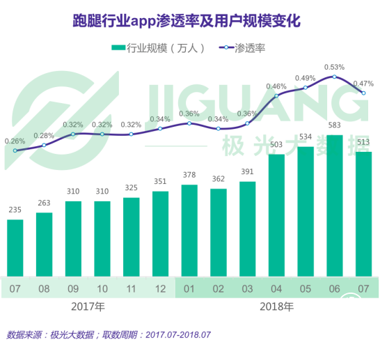 整體滲透率在過去一年處于上升狀態(tài),截至2018年7月,整體滲透率為0.47%,用戶規(guī)模為513萬,同比增長約1倍。