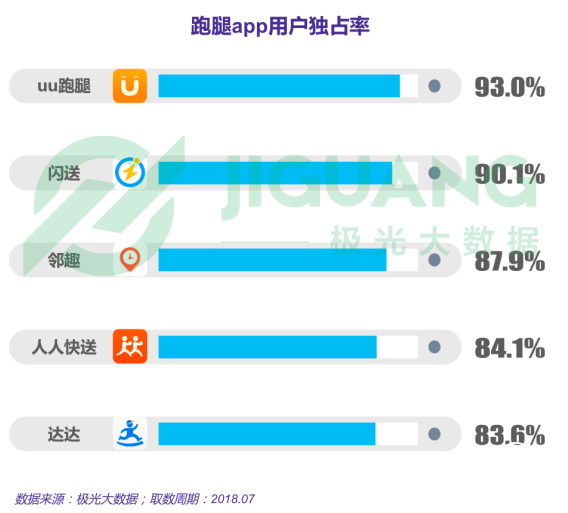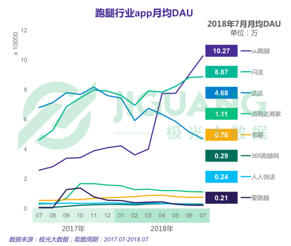 根據(jù)極光大數(shù)據(jù)顯示,2018年7月,uu跑腿app以10.27萬月均DAU居于首位。