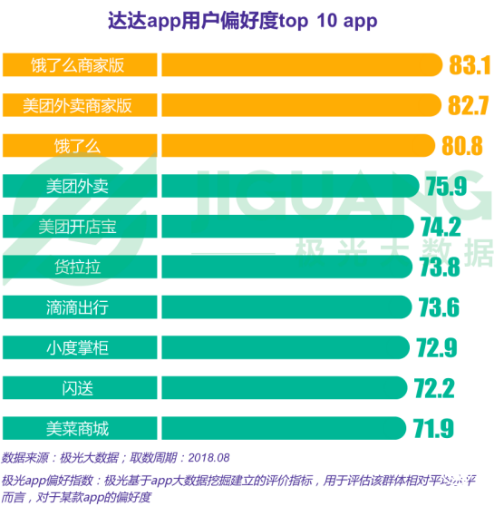 跑腿行業(yè)app用戶除了偏好餓了么、大眾點(diǎn)評、美團(tuán)外賣等生活服務(wù)類app,對于餓了么商家版、美團(tuán)外賣商家版也有較高偏好度,可見外賣商家也是各跑腿app重要客單來源。