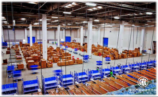 科捷“人機(jī)共舞”倉(cāng)實(shí)景圖