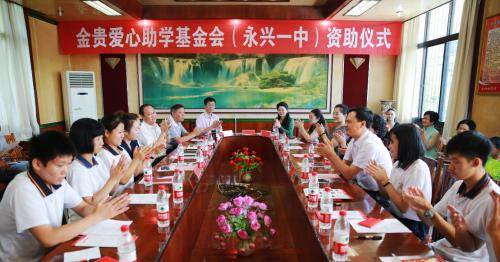 2016年9月,為了積極響應(yīng)郴州市工商聯(lián)“萬企幫萬村”精準(zhǔn)扶貧行動(dòng),金貴銀業(yè)與國(guó)家級(jí)貧困村——桂東縣長(zhǎng)青村結(jié)成“一對(duì)一”幫扶對(duì)子,斥資116.5萬元為該村觀光索道橋、長(zhǎng)青小學(xué)公路的建設(shè),以及17戶村民的醫(yī)療救助。長(zhǎng)青村的村民用一句打油詩(shī)表達(dá)了他們對(duì)金貴銀業(yè)的感激之情——“金橋銀路長(zhǎng)青村,精準(zhǔn)扶貧金貴情”。