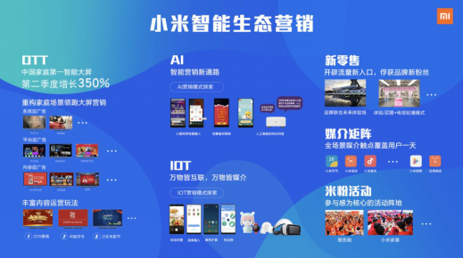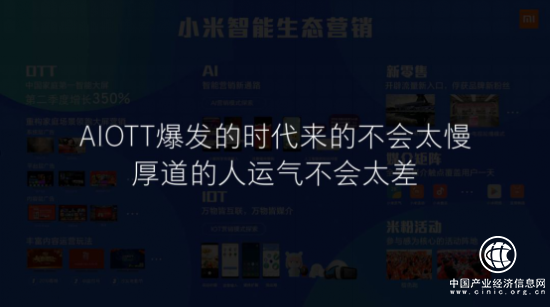小米公司廣告銷售部總經(jīng)理陳高銘談到,“AIOTT是AI、IoT、OTT的整合體,也是基于小米資源優(yōu)勢(shì)的必然產(chǎn)物。AI是無所不在的入口,IoT是與消費(fèi)者接觸的載體,OTT與家庭緊密相連。”