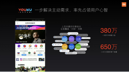 在世界杯期間,小米營(yíng)銷基于“小愛同學(xué)”的創(chuàng)新營(yíng)銷,使優(yōu)酷世界杯收獲市場(chǎng)主動(dòng)。用戶可通過“小愛同學(xué)”呼叫關(guān)于世界杯的上百關(guān)鍵詞,以獲得比賽信息、參與足球話題等。在此過程中不僅獲得380萬次喚醒,還為優(yōu)酷這一成熟平臺(tái),帶來超過650萬的新增下載量。用戶也體會(huì)到了獲取資訊的便利??梢夾I營(yíng)銷具有無限可能。