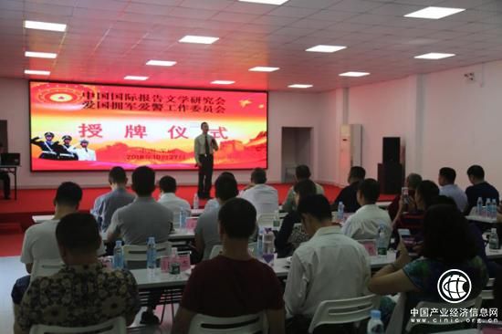 2018年10月27日上午,中國國際報告文學(xué)研究會(愛國擁軍愛警工作委員會)聯(lián)絡(luò)處(深圳市)授牌儀式在廣東省軍歌嘹亮基地(東莞)隆重舉行,出席此次授牌儀式的領(lǐng)導(dǎo)嘉賓有:中國國際報告文學(xué)研究會宣傳部部長、愛國擁軍愛警工作委員會執(zhí)行主任馬新存,中國國際報告文學(xué)研究會宣傳部副部長兼愛國擁軍愛警工作委員會副主任王慶海,國報會愛國擁軍愛警工作委員會執(zhí)行秘書長廖海濤、副秘書長蘇敏、林虎,會員部副部長秦景領(lǐng)、羅慶喜、袁正其,廣東軍歌嘹亮基地(東莞)副總裁萬良文,香港梅花篆字藝術(shù)研究院院長王斌,江蘇宜興太湖一號董事長李革以及深圳市相關(guān)部門負(fù)責(zé)人共計60余人參加了會議。