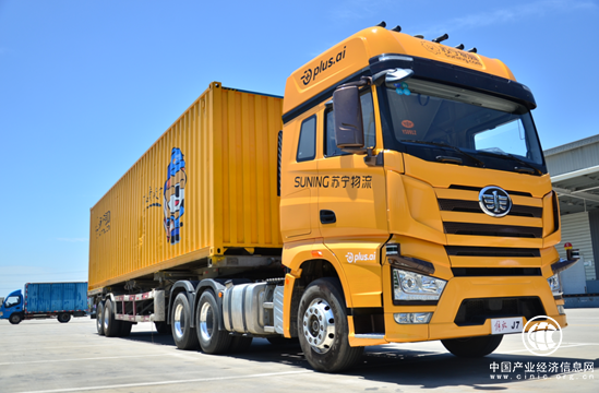 (圖:蘇寧推出的無人重卡“行龍一號”)