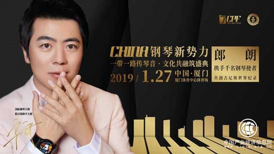 2019年1月27日,國(guó)際鋼琴大師、聯(lián)合國(guó)和平大使郎朗將攜手一帶一路沿線國(guó)家和地區(qū)招選出的1554名鋼琴使者,于“鋼琴之島”——廈門,以四手聯(lián)彈的表演形式共創(chuàng)777架鋼琴同時(shí)演奏的吉尼斯世界紀(jì)錄。本次活動(dòng)將由眾多海內(nèi)外鋼琴大師及頂級(jí)藝術(shù)家將聯(lián)袂出演,共創(chuàng)盛典,見(jiàn)證這一有史以來(lái)最多鋼琴同時(shí)演奏的吉尼斯世界紀(jì)錄的誕生。據(jù)悉盛典將由央視進(jìn)行現(xiàn)場(chǎng)錄播,300家以上的媒體全程跟蹤見(jiàn)證1554名鋼琴使者的誕生和最終的盛典現(xiàn)場(chǎng);超強(qiáng)演員陣容重新定義舞臺(tái)上的豪華,跨越古典、流行、世界音樂(lè)、搖滾各種藝術(shù)形式和音樂(lè)流派,同臺(tái)獻(xiàn)藝,并將通過(guò)央視錄播、互聯(lián)網(wǎng)直播的形式讓全世界關(guān)注到中國(guó)鋼琴新勢(shì)力正在發(fā)聲。