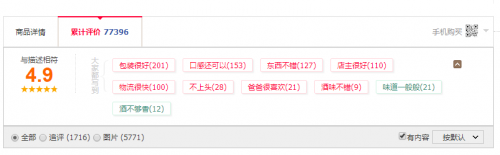 江小白天貓旗艦店評價標(biāo)簽截圖