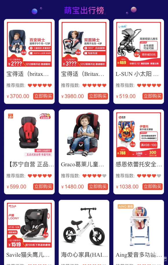 帶娃也要美美的,“辣媽帶娃榜”里,蘇寧國際官方直營的Lily Charmed銀色項鏈?zhǔn)艿嚼眿寕冏放酰o(jì)梵希小羊皮口紅高定、cpb肌膚之鑰等美妝也成功晉升為辣媽變美的國民爆款。寶寶出行也是重頭戲,寶得適、L-SUN小太陽、好孩子、Graco等品牌嬰兒推車躋身“萌寶出行榜”的前五;寶寶吃的放心辣媽才能安心,在“寶寶吃的放心”榜單里,美素佳兒、飛鶴、雅培、惠氏啟賦等依舊是顧客信賴的好奶粉。