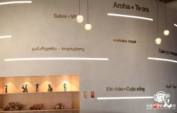 除了美食以外,Hello Mart的環(huán)境也是別有新意。網(wǎng)紅的,傳統(tǒng)的,異域風情的,樣樣皆有!一入門就能看到形象墻柱,上面寫滿了30多種語言,每一句都是Hello Mart想要表達的:你好,生活!墻上還展示許多農(nóng)業(yè)工具,每一種都是中國最古老的農(nóng)具,一切來自于泥土!墻體上還有不少墻繪,最吸引北叔的就是這兩只鯤鵬,一只承載了江山,一只承載了家園……中國原創(chuàng)背景音樂,西班牙藝術(shù)家創(chuàng)作的形象熊,日本知名廚具等等,來自9個國家的不同文化創(chuàng)作,在這里完美的融合!