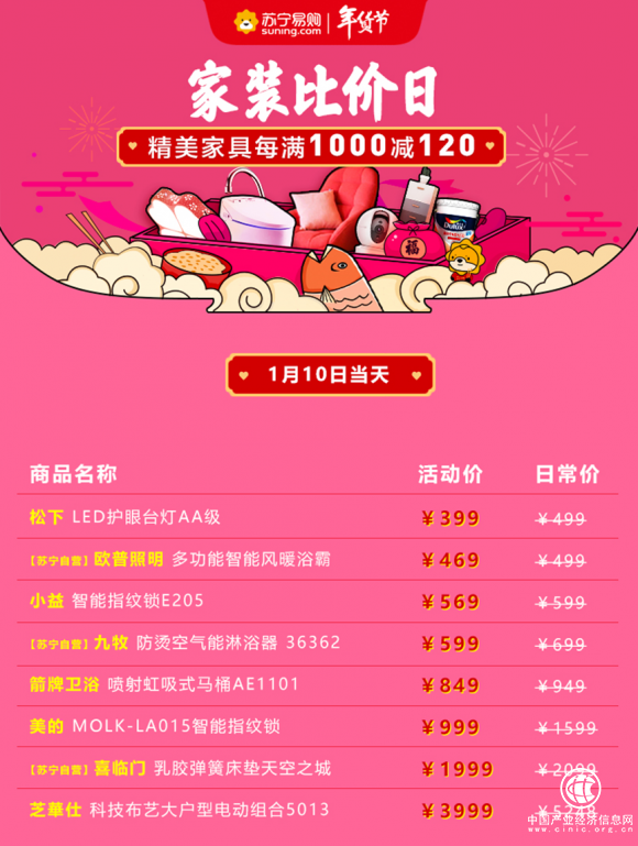 據(jù)悉,1月10日的家裝比價(jià)日還將有更多經(jīng)濟(jì)適用好物。延續(xù)今年家裝比價(jià)日“7項(xiàng)宣言”:蘇寧自營大件家裝產(chǎn)品配件全含、0安裝費(fèi);物流方面,一周內(nèi)可免費(fèi)預(yù)約配送時(shí)間,部分城市可以在發(fā)貨后半日達(dá)。此外,春節(jié)“不打烊”,自營部分家裝產(chǎn)品準(zhǔn)時(shí)送達(dá)。
