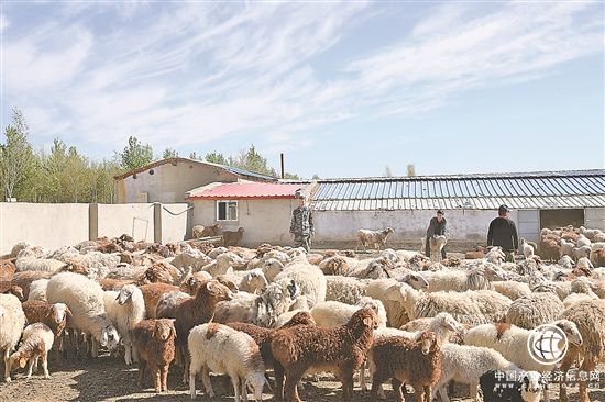 圖為喀爾交鎮(zhèn)牲畜養(yǎng)殖受益人塔拉普汗·沙合多拉,集中放養(yǎng)合作社310只羊,月增收4000元。史智峰攝